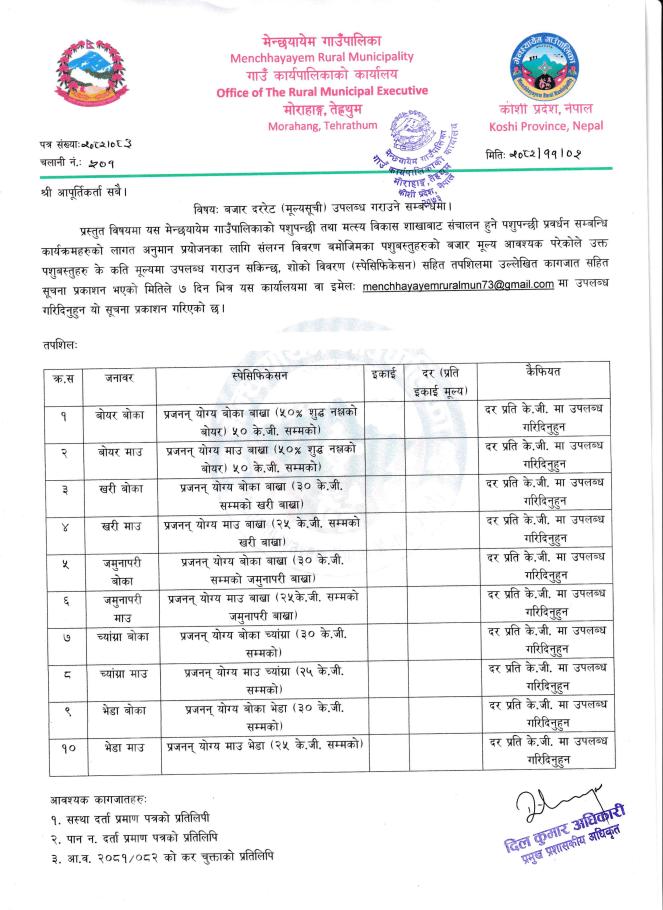 दररेट उपलब्ध गराउने सम्बन्धि सूचना ।