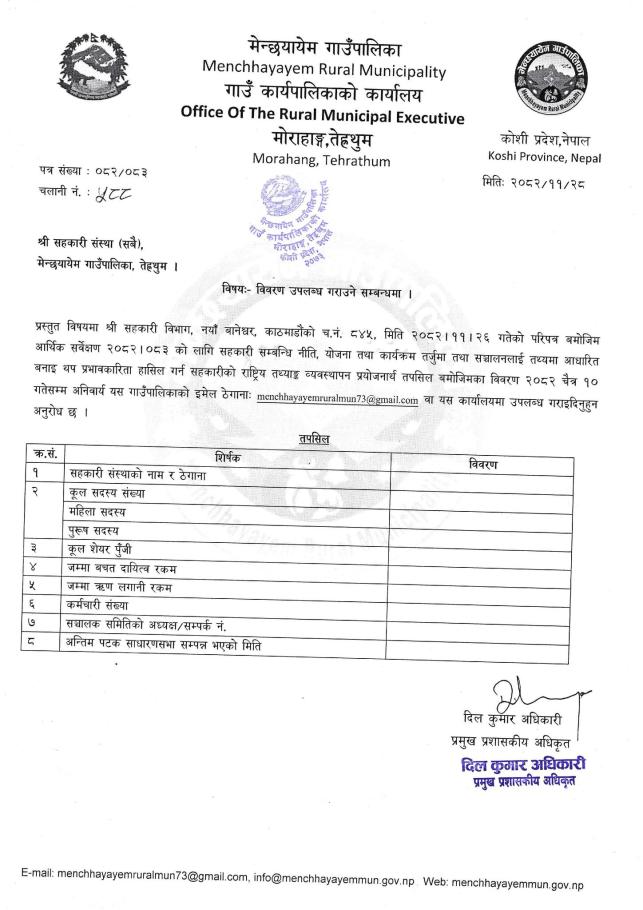 सहकारी संस्थाहरूलाई विवरण उपलब्ध गराउने सम्बन्धि सूचना ।