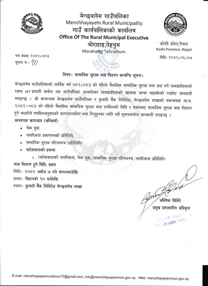 सामाजिक सुरक्षा भत्ता वितरण सम्बन्धमा ।