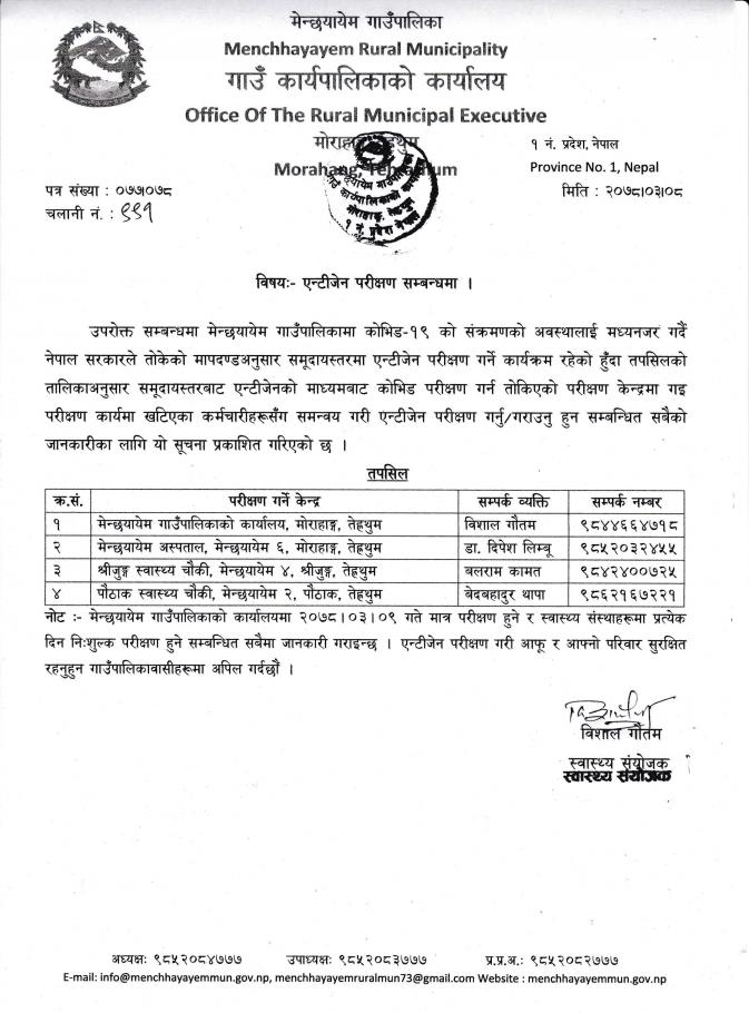 एन्टीजेन परीक्षण सम्बन्धमा ।