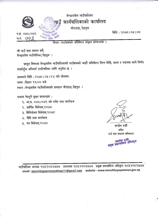 गाउँ सभाको अधिवेशन आव्हान सम्बन्धमा ।