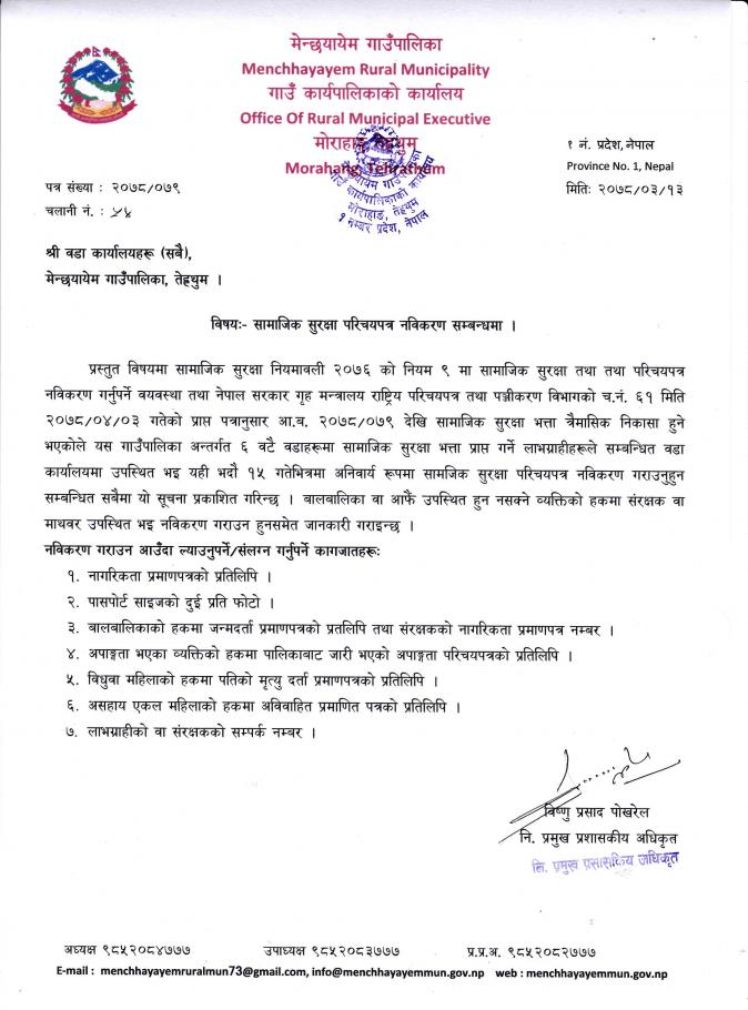 सामाजिक सुरक्षा परिचयपत्र नविकरण सम्बन्धमा ।